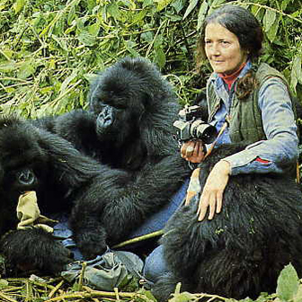 Dian Fossey était une éthnologue américaine reconnue, spécialisée dans l’étude du comportement des gorilles. Elle faisait partie des Leakey’s Angels avec Jane Goodall, chercheuse étudiant les chimpanzés et Biruté Galdikas, chercheuse elle aussi, spécialiste des orangs-outans. Ces trois femmes furent envoyées par Louis Leakey (primatologue, archéologue, paléontologue) pour étudier les grands singes dans leur milieu naturel.
