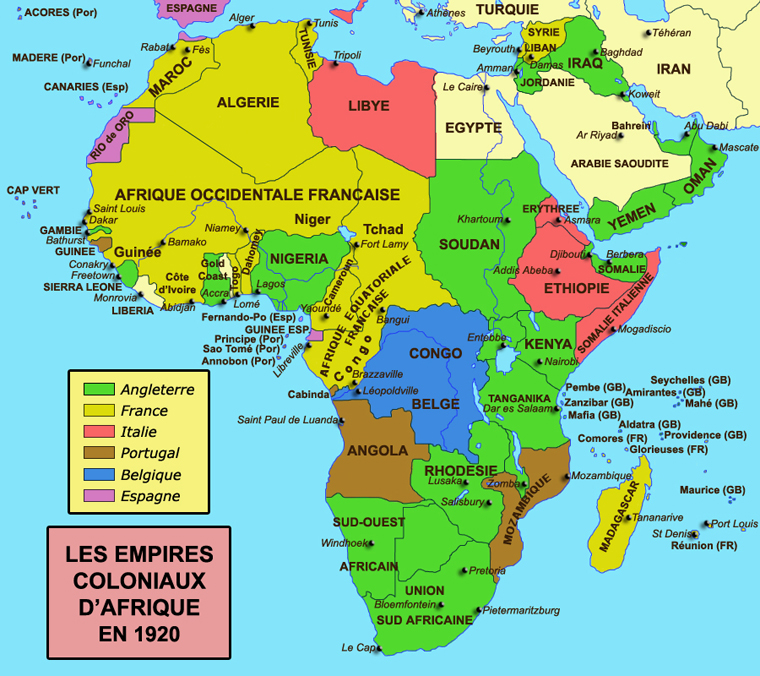 Le Congo Belge en bleu, le Kenya est situé juste à droite et la Rhodésie se situe sous le Congo Belge.