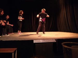 Effectivement nous avons un training toutes les semaines, nous nous réunissons le mardi soit entre nous (quand on ne joue pas au Biplan). Nous travaillons soit des thématiques théâtrales (l’écoute, le personnage, la construction), soit nous travaillons des catégories, nos propres catégories d’improvisation ou celles que l’on peut rencontrer en matches.