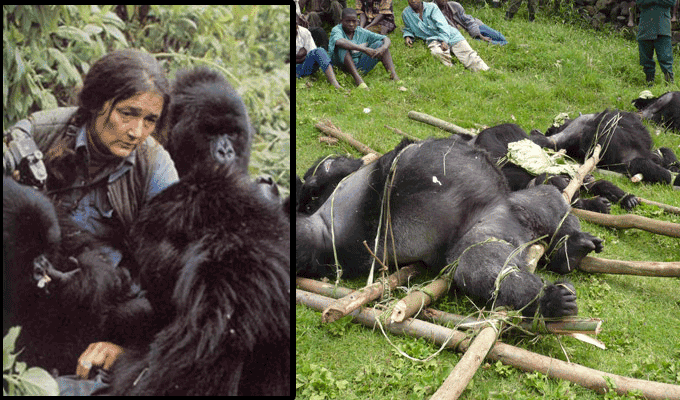 Le 26 décembre 1985, à l’âge de 53 ans, Dian est découverte morte dans sa hutte, le crâne fendu en deux par des coups de machette. Dian Fossey s’est battue contre le trafic de bébés gorilles et pour la survie de cette espèce. A l’époque, les salaires que percevaient les protecteurs du parc étaient tellement dérisoires que ceux-là même contribuaient aux massacres des gorilles en étant soudoyés par les braconniers. C’est grâce à ses recherches que la préservation des gorilles a perduré. Le travail de Dian ne fut pas vain, Katie Fawcett, directrice du centre Ruhengeri, ayant repris le flambeau.