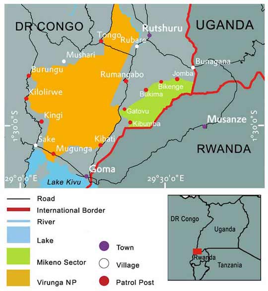 Le 9 juillet 1967, Dian est attendue par un comité d’accueil, après sa journée avec les gorilles, composé de soldats et de porteurs afin d’escorter Dian hors des montagnes sur les recommandations de Anicet Mburanumwe (directeur du parc) car des rebelles font rage et un racisme anti-blanc sévit. Tant bien que mal, Dian s’y résout et pendant plusieurs semaines, elle perd le contact avec ses gorilles. Après quelques mésaventures, Dian se retrouve au Rwanda, au sud de l’équateur. Le Rwanda est recouvert d’une végétation spectaculaire. Deux parcs nationaux en font partie : A’kagera au nord-est et le parc des Volcans au sommet des montagnes du Virunga au nord-ouest.